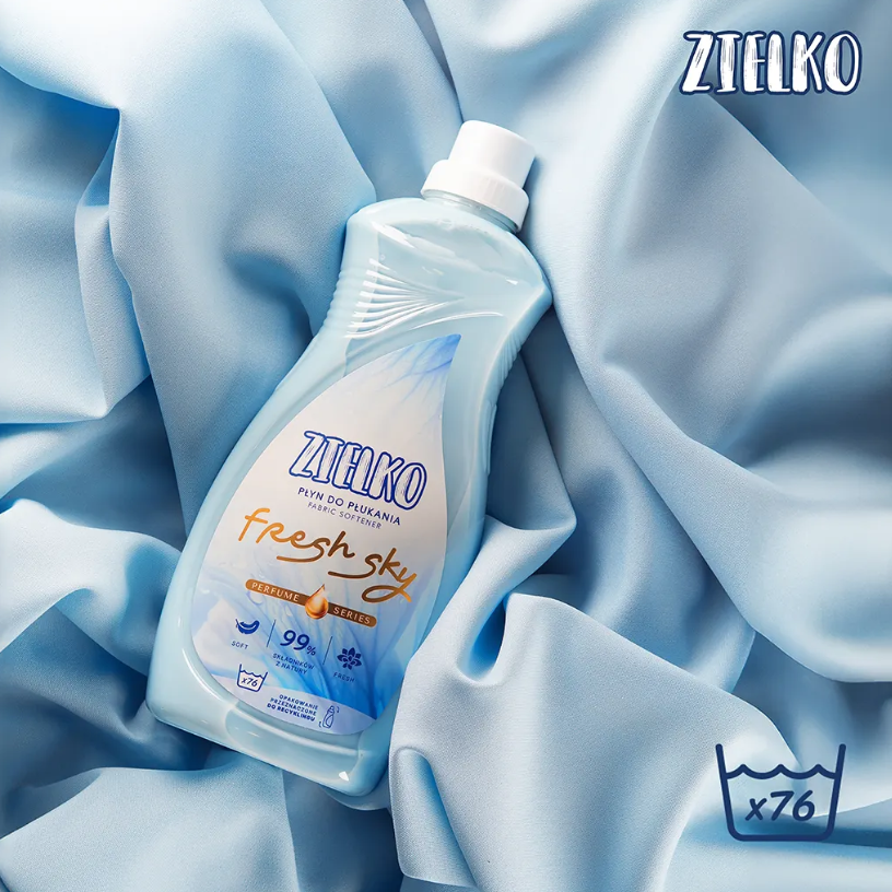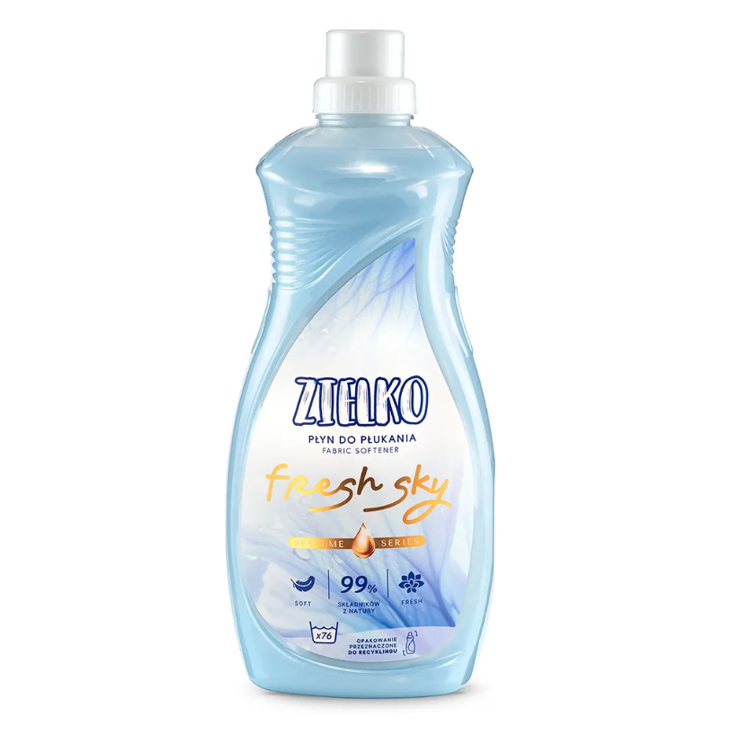 Poczuj orzeźwiający powiew świeżości! ZIELKO Płyn do płukania FRESH SKY otula ubrania lekkim, chłodnym aromatem inspirowanym morską bryzą i czystością natury. Jego formuła zmiękcza tkaniny, wygładzając ich strukturę i chroniąc włókna przed zniszczeniem. Idealny do codziennego użytku, zapewnia długotrwałą świeżość i subtelny, niebiański zapach.